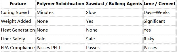 Unlike sawdust or lime, which either add bulk or generate heat, polymer solidifiers:
