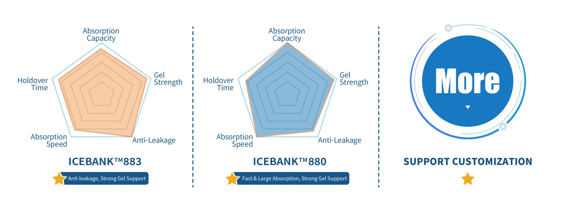 Simply mix our fast-absorbing SAP powder with water—no complex processing needed—to create a durable, long-lasting gel that maintains hot or cold temperatures for extended periods. Ideal for cold chain logistics, medical shipments, meal delivery services, and emergency cooling applications, SOCO’s gel ice pack powder (ICEBANK)ensures consistent performance, cost savings, and customizable solutions tailored to your needs.